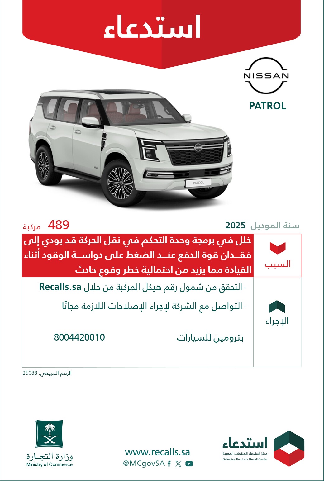 السبب:خلل في وحدة التحكم بتحويل عزم الدوران بين المحور الأمامي والخلفي قد يؤدي إلى فقدان قوة الدفع عند الضغط على دواسة الوقود أثناء القيادة مما يزيد من احتمالية خطر وقوع حادث