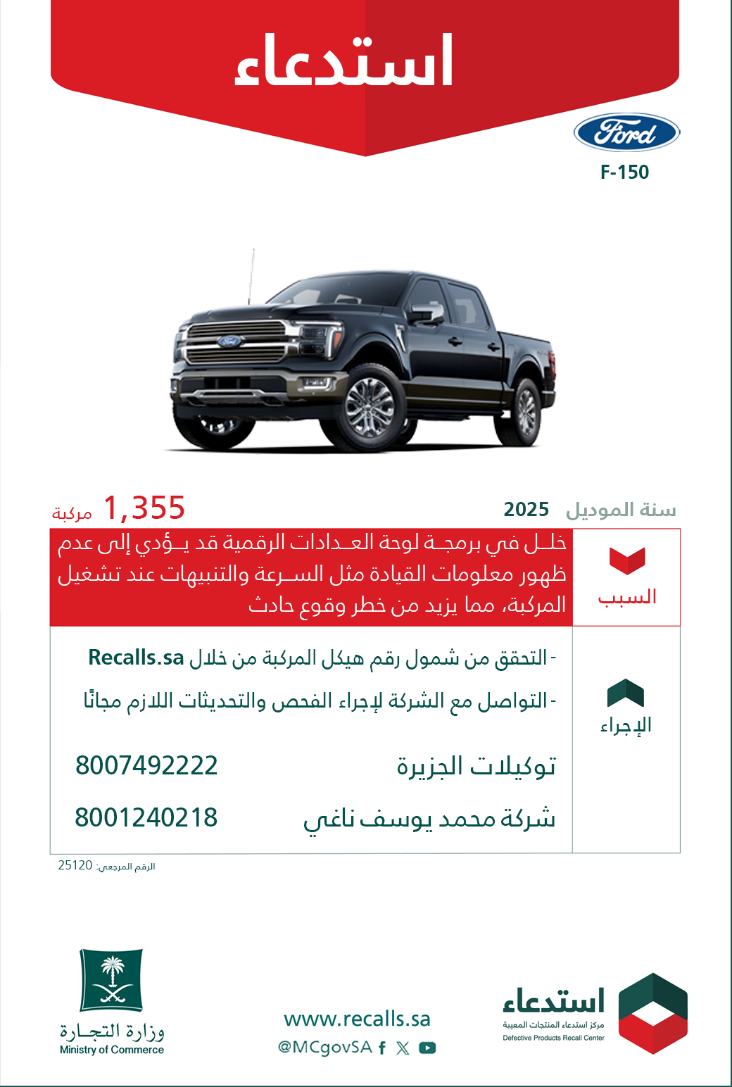 السبب:خلل برمجي في العدادات الرقمية قد يؤدي إلى عدم ظهور معلومات القيادة مثل السرعة والتنبيهات عند تشغيل المركبة، مما يزيد خطر وقوع حادث.
