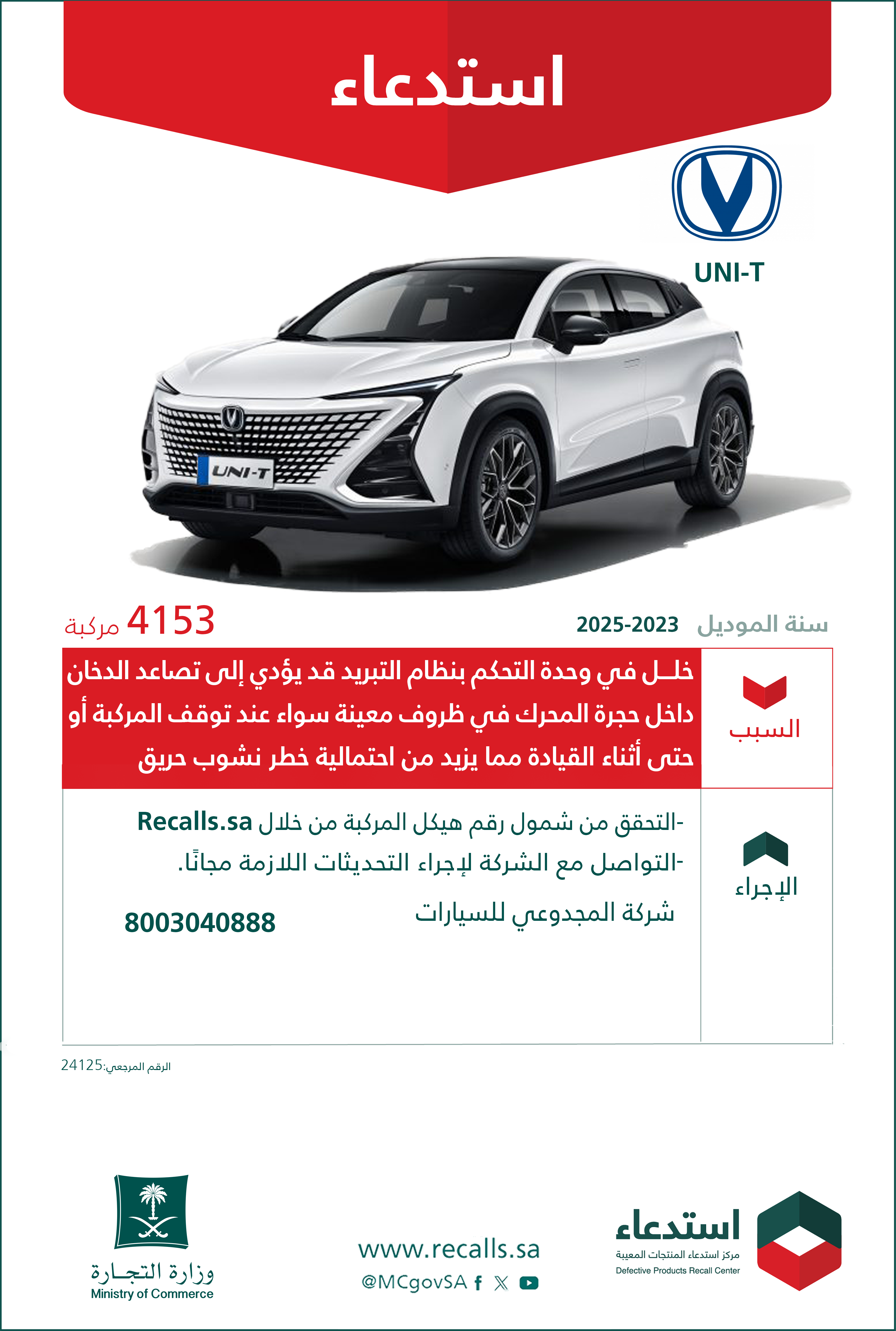 السبب:خلل في وحدة التحكم بنظام التبريد قد يؤدي إلى تصاعد الدخان داخل حجرة المحرك في ظروف معينة سواء عند توقف المركبة أو حتى أثناء القيادة مما يزيد من احتمالية خطر نشوب حريق .